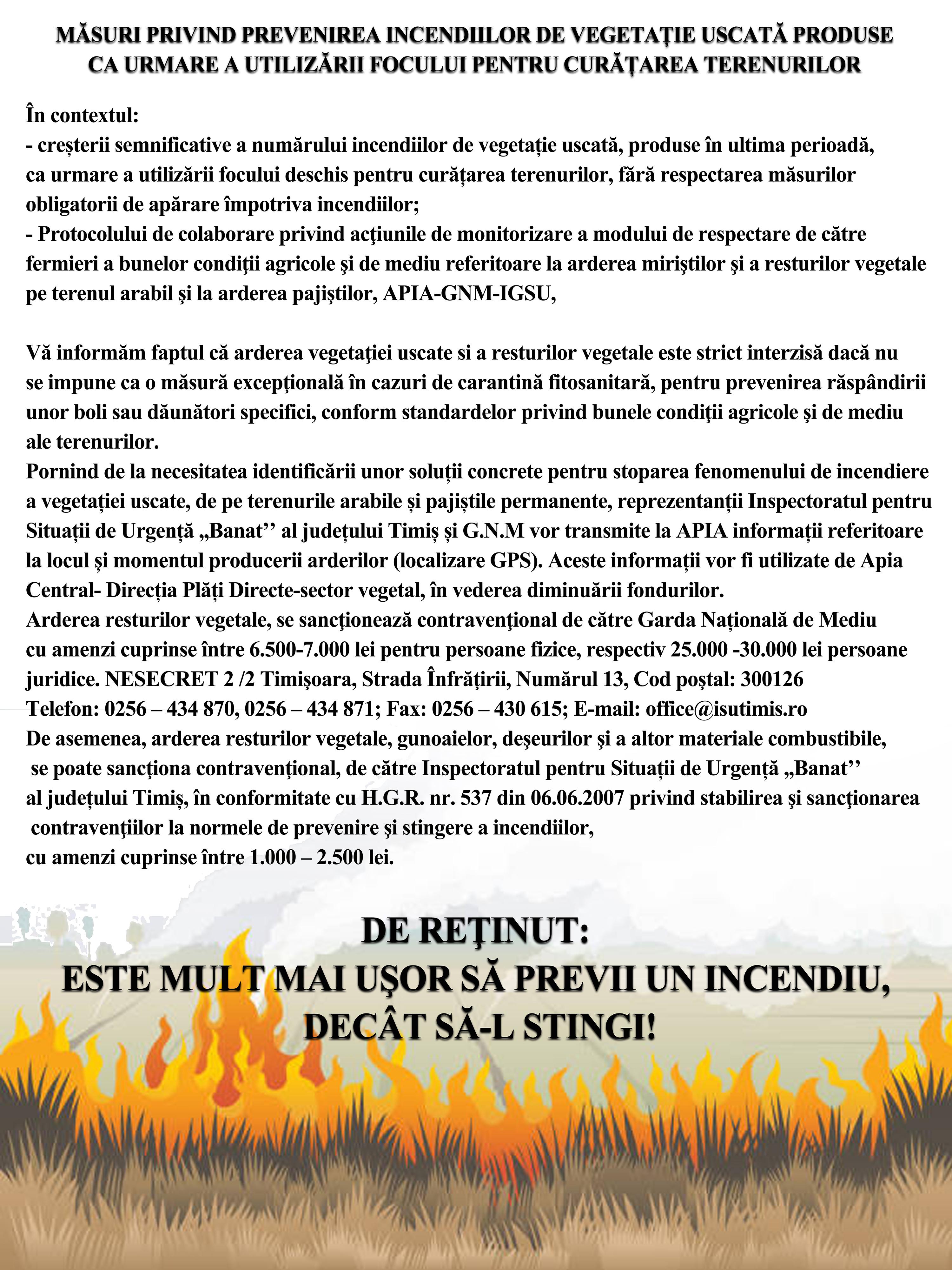 Masuri de prevenire a incendiilor de vegetatie uscata