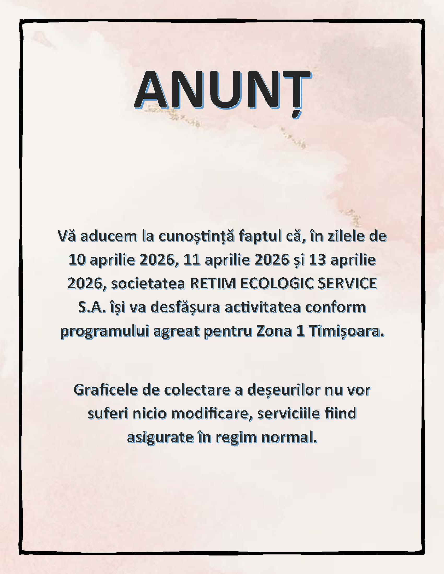 • Anunt colectare deseuri menajere in perioada sarbatorilor Pascale 2026