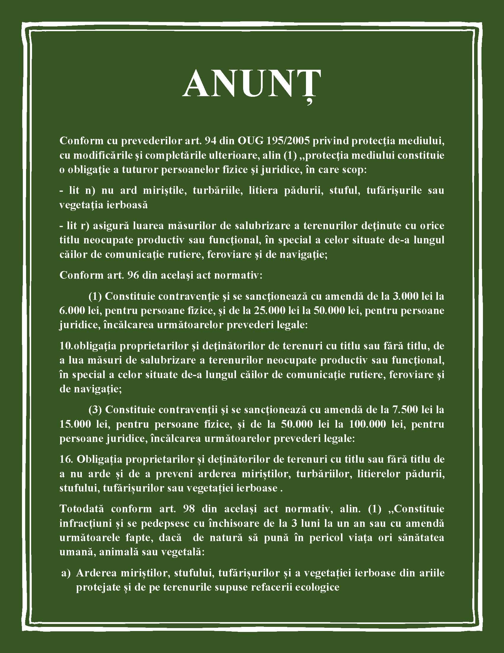 Anunt interdictie ardere vegetatie