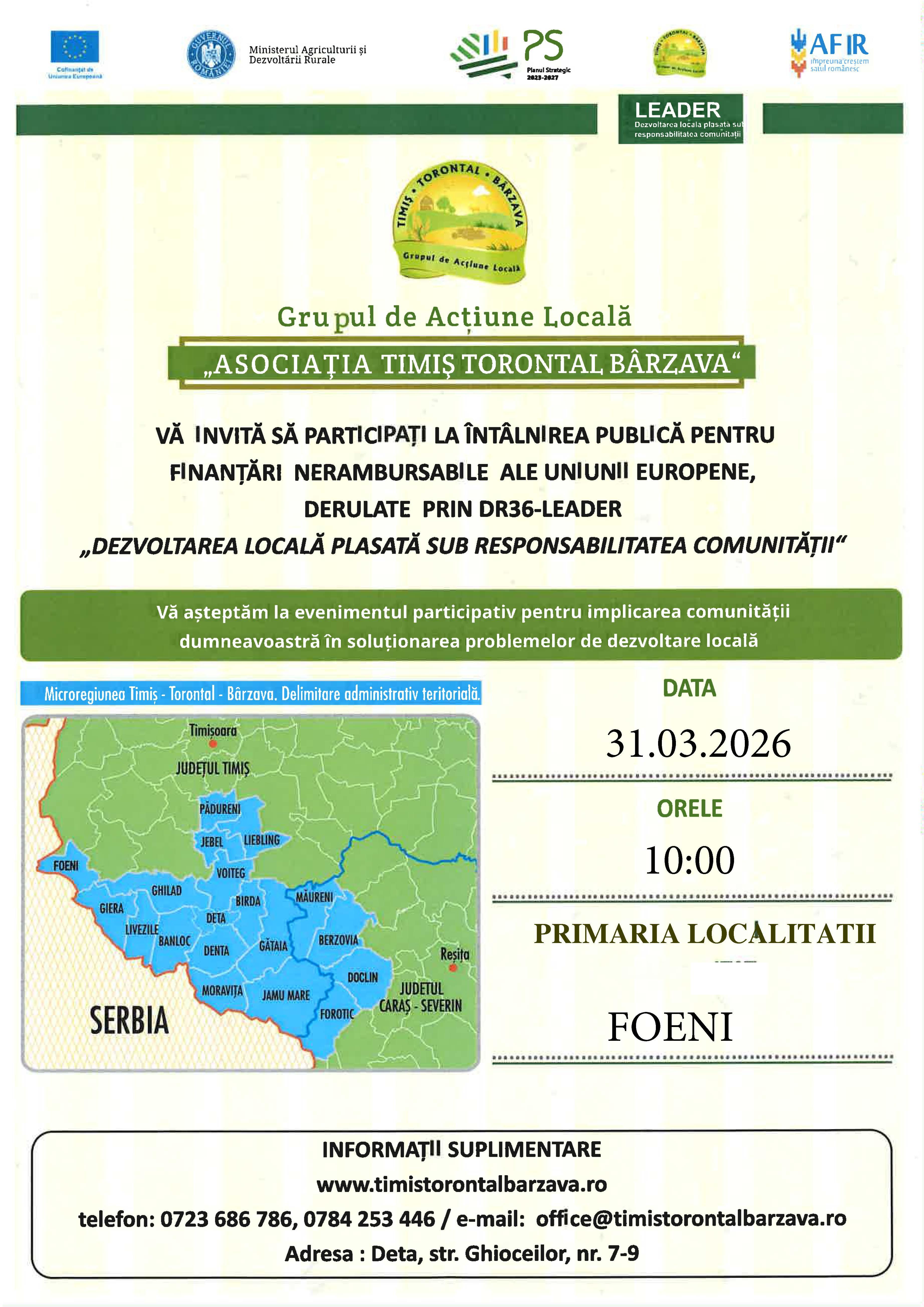 Invitatie intalnire publica de lucru GAL Asociatia Timis Torontal Barzava