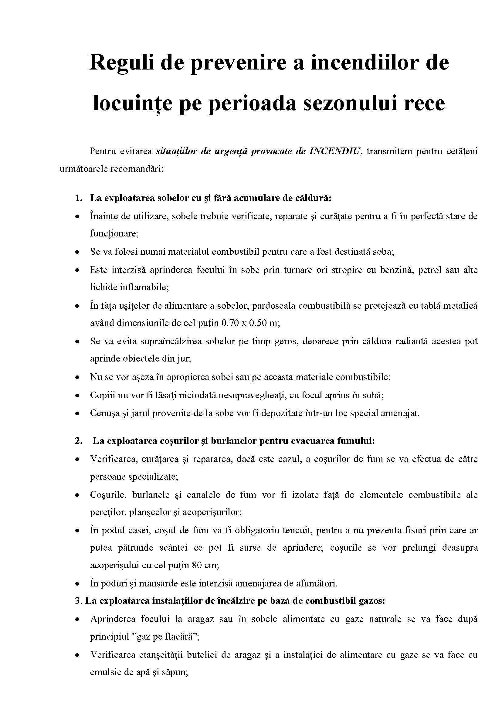 • Reguli de prevenire a incendiilor de locuințe pe perioada sezonului rece